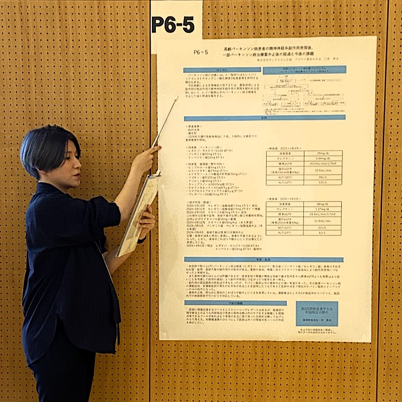 【演題】⾼齢パーキンソン病患者の精神神経系副作⽤発現後、⼀部パーキンソン病治療薬中⽌後の経過と今後の課題