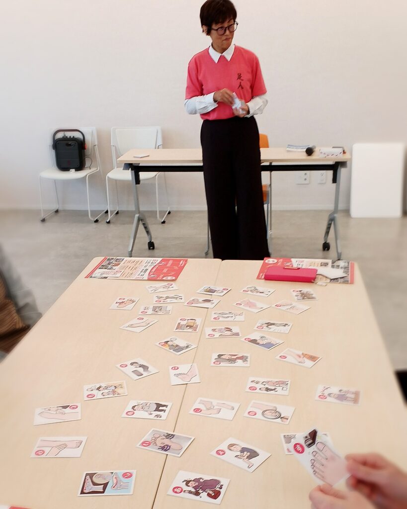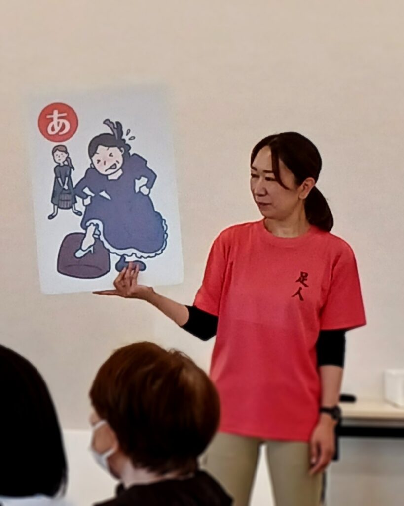 参加者の皆さんには、ぐんま足人の会オリジナルの「足人かるた」に挑戦していただきました! このかるたは、足のことを楽しく学んでほしいという思いから生まれたものです。札を1枚取るごとに、その内容について丁寧な解説があり、初めて聞く言葉もわかりやすく説明していただきました。足について、たくさんの知識を得ることができました。