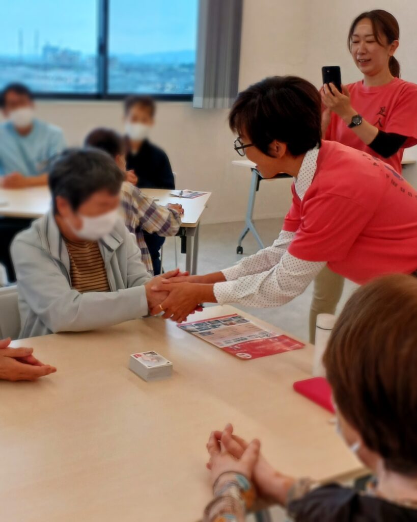 各テーブルで札を一番多く取った方には、木嶋さんから愛のこもった握手のプレゼント💛 皆さん、楽しそうにかるたを取っていらっしゃいました☆