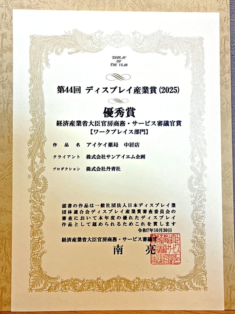アイケイ薬局中居店が「2025年度ディスプレイ産業賞・優秀賞」を受賞しました