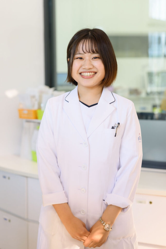 在学中から地域に根ざした薬局で働きたいと考えておりました。5年生時の実習でお世話になりましたが、懇切丁寧な指導のもと職場の雰囲気や温かさを実感することができました。地域のイベントに参加させていただいた際は、地域の方々との関わり方やスタッフ同士が声を掛け合う姿が印象的で、「自分の描く将来像」がイメージできたことを覚えています。ここなら自分のやりたいことに挑戦しながら成長できると思い、入社を決めました。